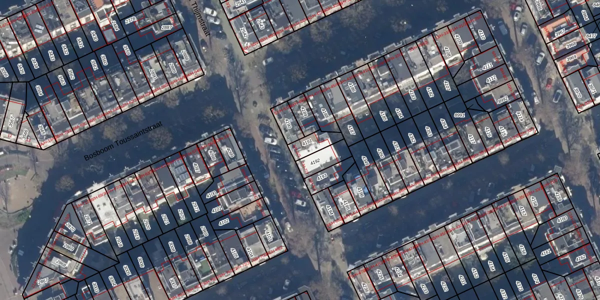Het adres is gelegen op perceel 4191 in de sectie Q en de kadastrale gemeente Amsterdam. De kadastrale aanduiding is aldus ASD13-Q-4191. De gemiddelde perceelgrootte in Amsterdam is 393,94 m². Dit perceel is kleiner: de perceeloppervlakte bedraagt 97 m². De grootste perceeloppervlakte in de kadastrale gemeente is 6,2 ha. De kleinste oppervlakte bedraagt 1 m². Op het perceel zijn 4 adressen aanwezig. In de Basisregistratie Kadaster (BRK) werden de grenzen van het perceel geregistreerd op 03-11-2006.