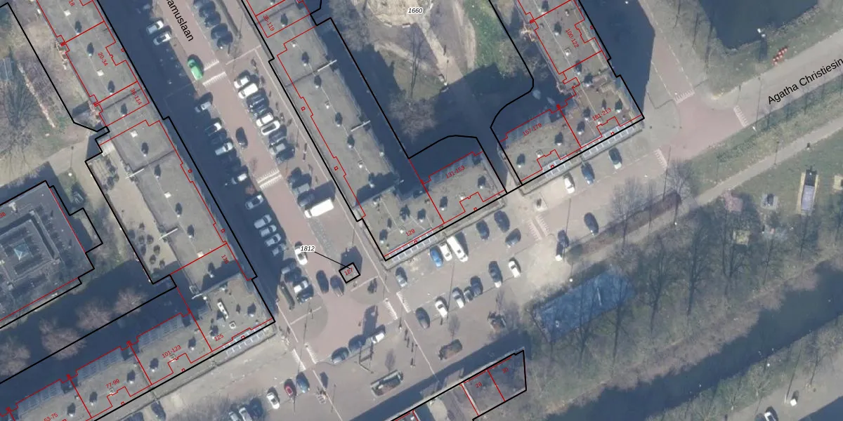 Het perceel waarop Albert Camuslaan 101 staat heeft een oppervlakte van 2613 m². Dit is een zeer groot perceel. De perceeloppervlakte wordt geregistreerd door het Kadaster. Gedetailleerde informatie over de maten van dit perceel kunt u vinden in het rapport Kadastrale kaart met maatvoering van Albert Camuslaan 101.