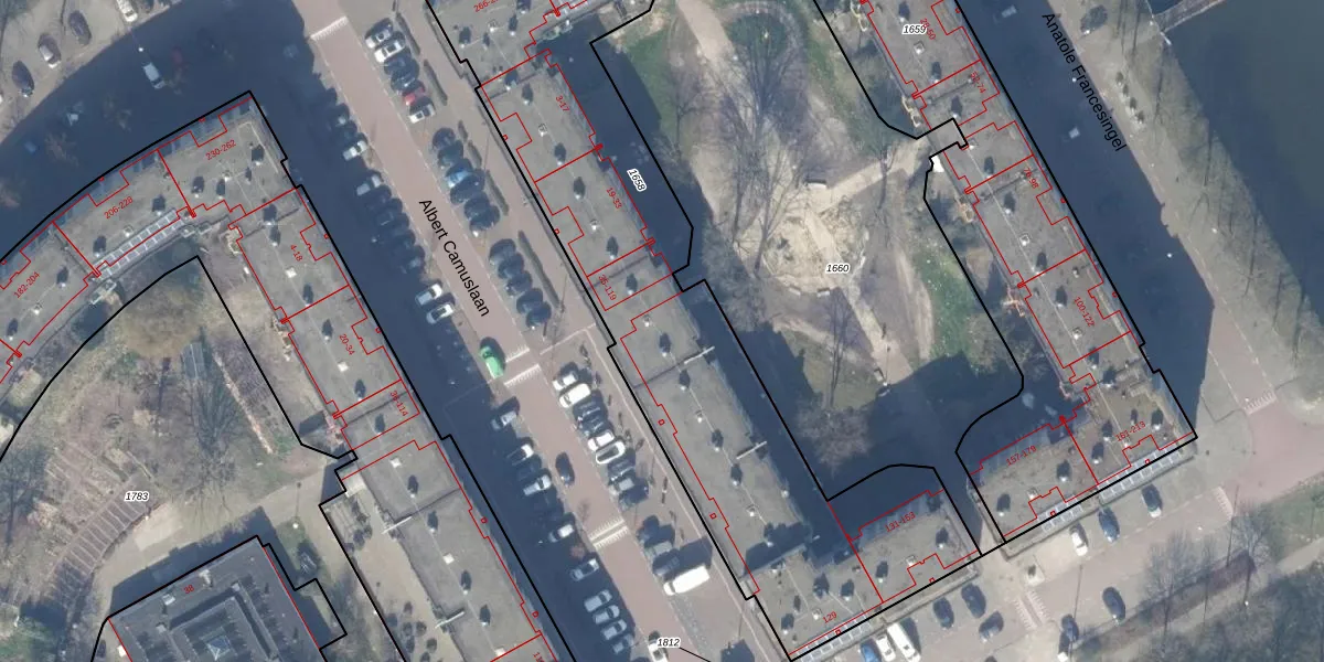 Het perceel waarop Albert Camuslaan 49 staat heeft een oppervlakte van 2613 m². Dit is een zeer groot perceel. De perceeloppervlakte wordt geregistreerd door het Kadaster. Gedetailleerde informatie over de maten van dit perceel kunt u vinden in het rapport Kadastrale kaart met maatvoering van Albert Camuslaan 49.