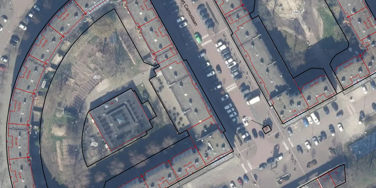 Het perceel waarop Albert Camuslaan 84 staat heeft een oppervlakte van 6425 m². Dit is een zeer groot perceel. De perceeloppervlakte wordt geregistreerd door het Kadaster. Gedetailleerde informatie over de maten van dit perceel kunt u vinden in het rapport Kadastrale kaart met maatvoering van Albert Camuslaan 84.