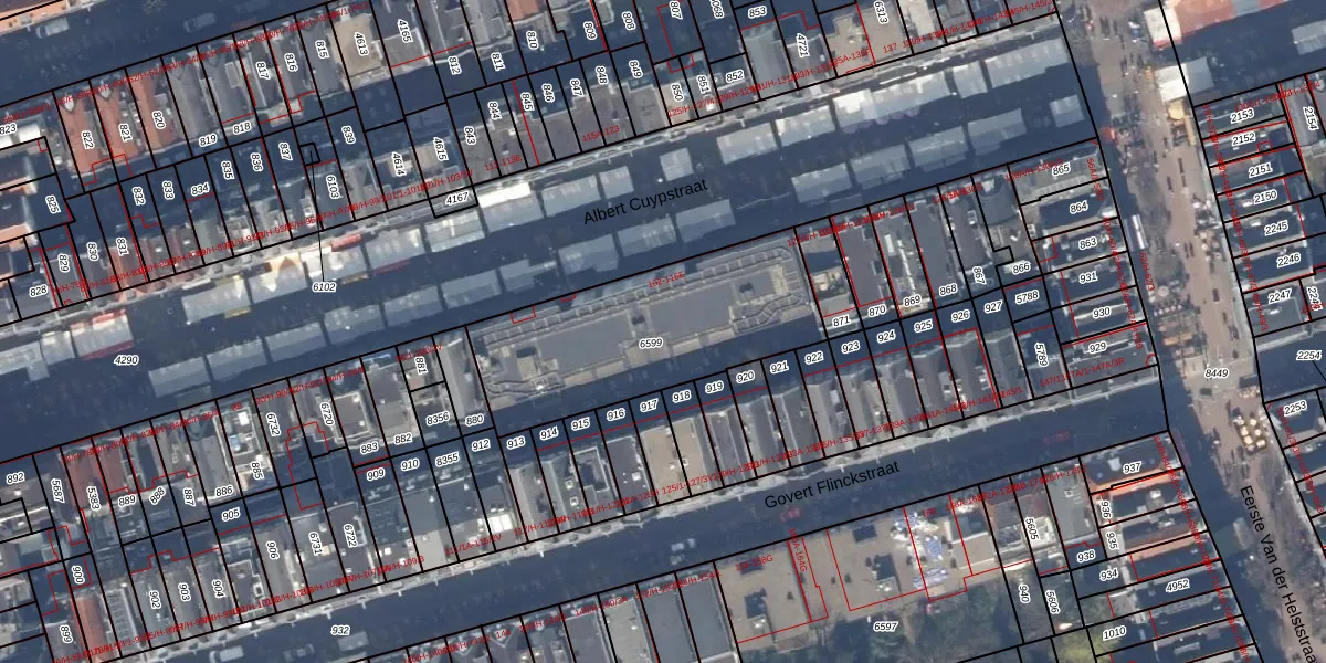Het perceel waarop Albert Cuypstraat 108-B staat heeft een oppervlakte van 906 m². Dit is een groot perceel. De perceeloppervlakte wordt geregistreerd door het Kadaster. Gedetailleerde informatie over de maten van dit perceel kunt u vinden in het rapport Kadastrale kaart met maatvoering van Albert Cuypstraat 108-B.