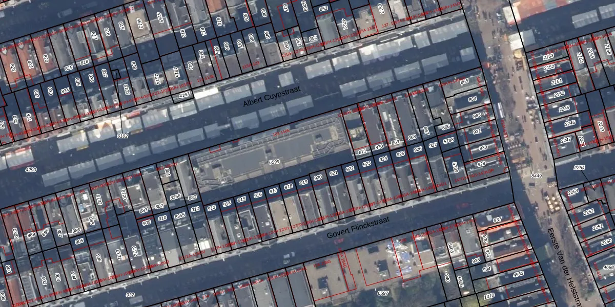 Het perceel waarop Albert Cuypstraat 112-D staat heeft een oppervlakte van 906 m². Dit is een groot perceel. De perceeloppervlakte wordt geregistreerd door het Kadaster. Gedetailleerde informatie over de maten van dit perceel kunt u vinden in het rapport Kadastrale kaart met maatvoering van Albert Cuypstraat 112-D.