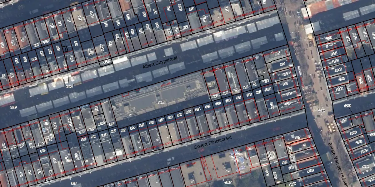 Het perceel waarop Albert Cuypstraat 114-B staat heeft een oppervlakte van 906 m². Dit is een groot perceel. De perceeloppervlakte wordt geregistreerd door het Kadaster. Gedetailleerde informatie over de maten van dit perceel kunt u vinden in het rapport Kadastrale kaart met maatvoering van Albert Cuypstraat 114-B.