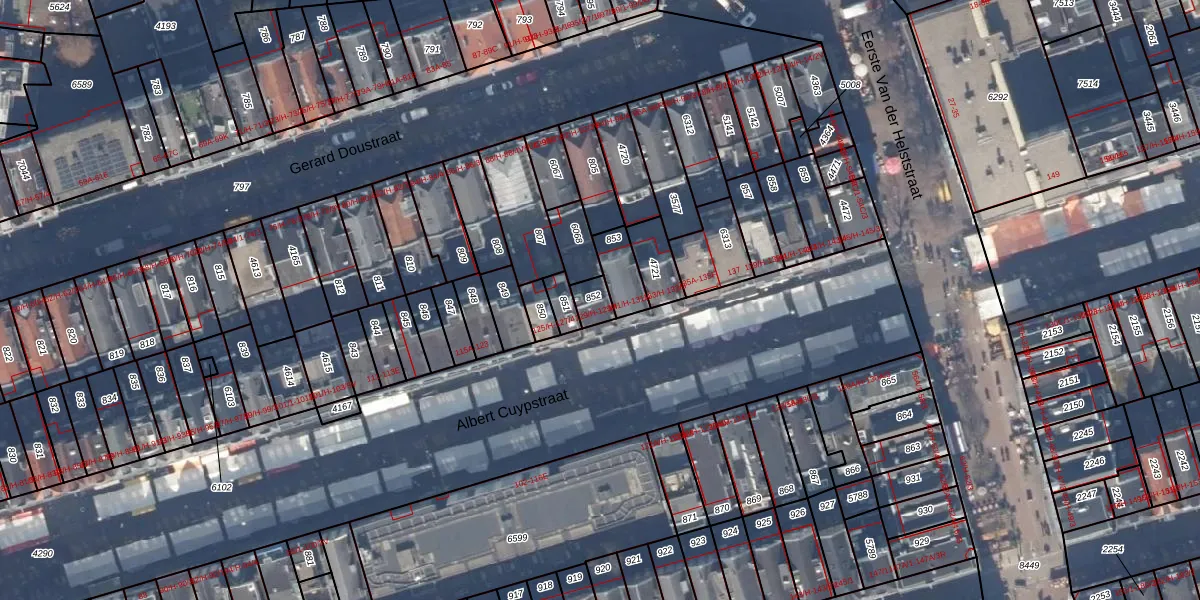 Het perceel waarop Albert Cuypstraat 129-H staat heeft een oppervlakte van 46 m². Dit is een klein perceel. De perceeloppervlakte wordt geregistreerd door het Kadaster. Gedetailleerde informatie over de maten van dit perceel kunt u vinden in het rapport Kadastrale kaart met maatvoering van Albert Cuypstraat 129-H.