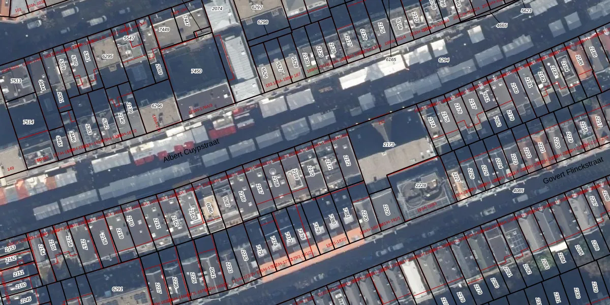 Het perceel waarop Albert Cuypstraat 164-E staat heeft een oppervlakte van 108 m². Dit is een middelgroot perceel. De perceeloppervlakte wordt geregistreerd door het Kadaster. Gedetailleerde informatie over de maten van dit perceel kunt u vinden in het rapport Kadastrale kaart met maatvoering van Albert Cuypstraat 164-E.