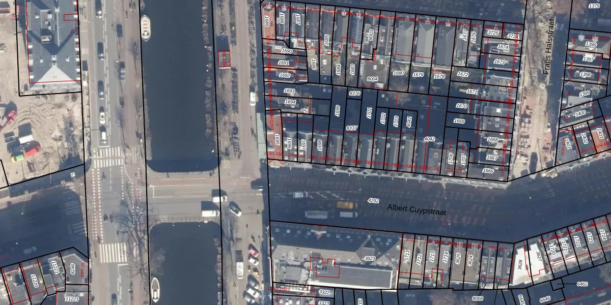 Het perceel waarop Albert Cuypstraat 17-1 staat heeft een oppervlakte van 80 m². Dit is een klein perceel. De perceeloppervlakte wordt geregistreerd door het Kadaster. Gedetailleerde informatie over de maten van dit perceel kunt u vinden in het rapport Kadastrale kaart met maatvoering van Albert Cuypstraat 17-1.