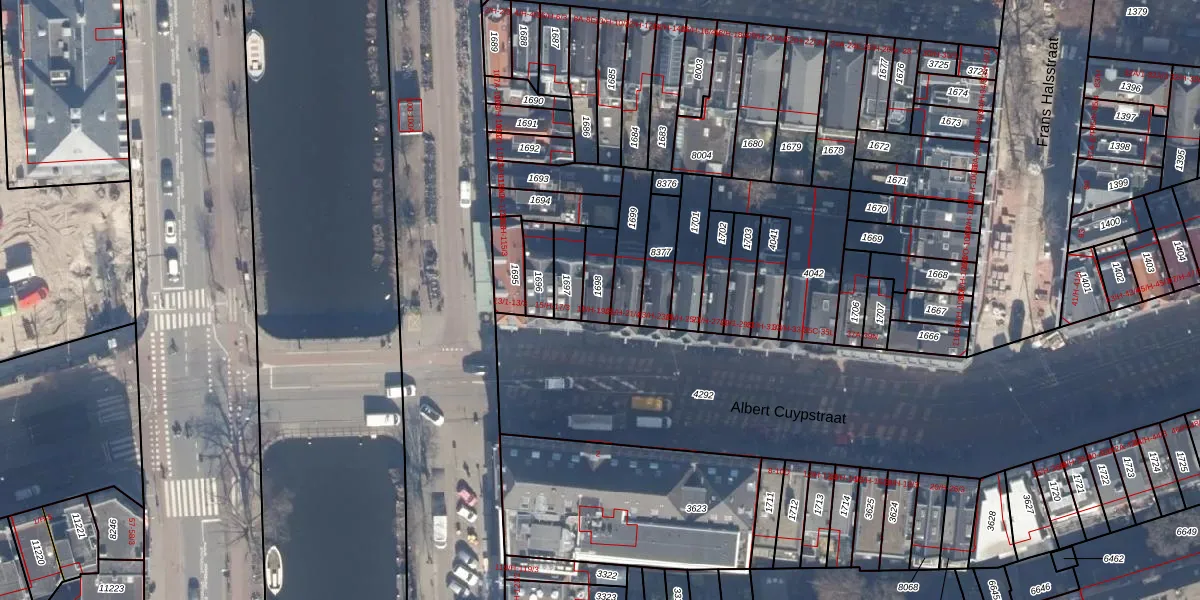Het perceel waarop Albert Cuypstraat 19-2 staat heeft een oppervlakte van 81 m². Dit is een klein perceel. De perceeloppervlakte wordt geregistreerd door het Kadaster. Gedetailleerde informatie over de maten van dit perceel kunt u vinden in het rapport Kadastrale kaart met maatvoering van Albert Cuypstraat 19-2.