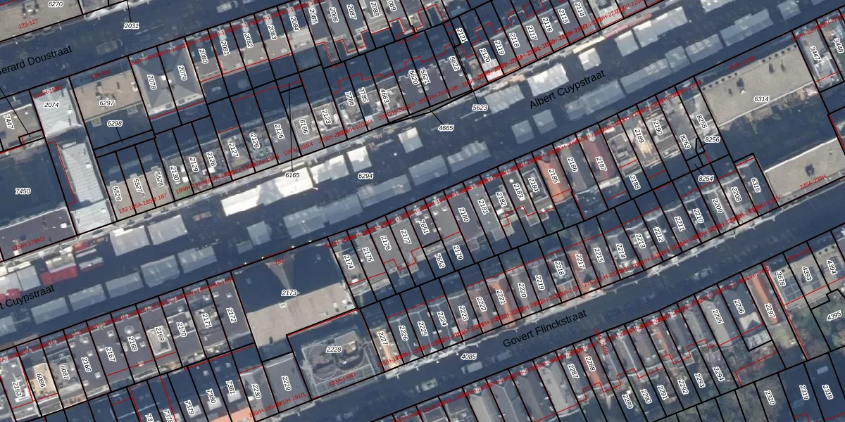 Het perceel waarop Albert Cuypstraat 192-3 staat heeft een oppervlakte van 53 m². Dit is een klein perceel. De perceeloppervlakte wordt geregistreerd door het Kadaster. Gedetailleerde informatie over de maten van dit perceel kunt u vinden in het rapport Kadastrale kaart met maatvoering van Albert Cuypstraat 192-3.
