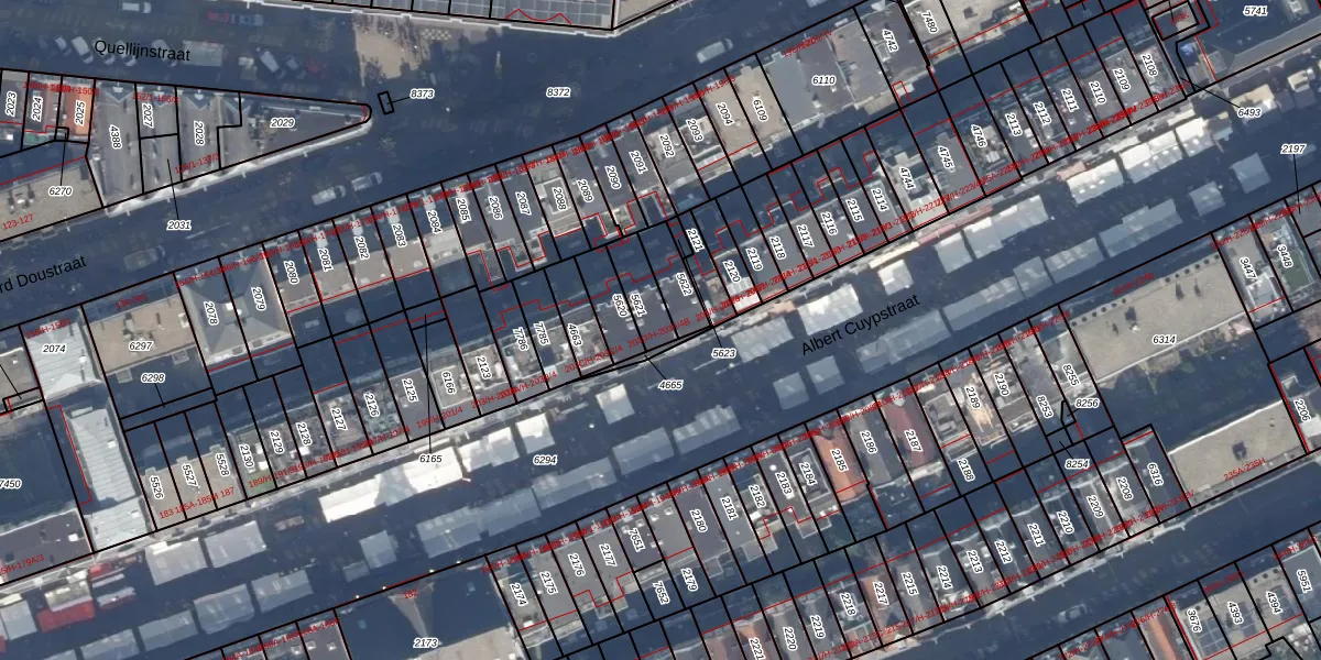 Het perceel waarop Albert Cuypstraat 203-E-O staat heeft een oppervlakte van 89 m². Dit is een klein perceel. De perceeloppervlakte wordt geregistreerd door het Kadaster. Gedetailleerde informatie over de maten van dit perceel kunt u vinden in het rapport Kadastrale kaart met maatvoering van Albert Cuypstraat 203-E-O.