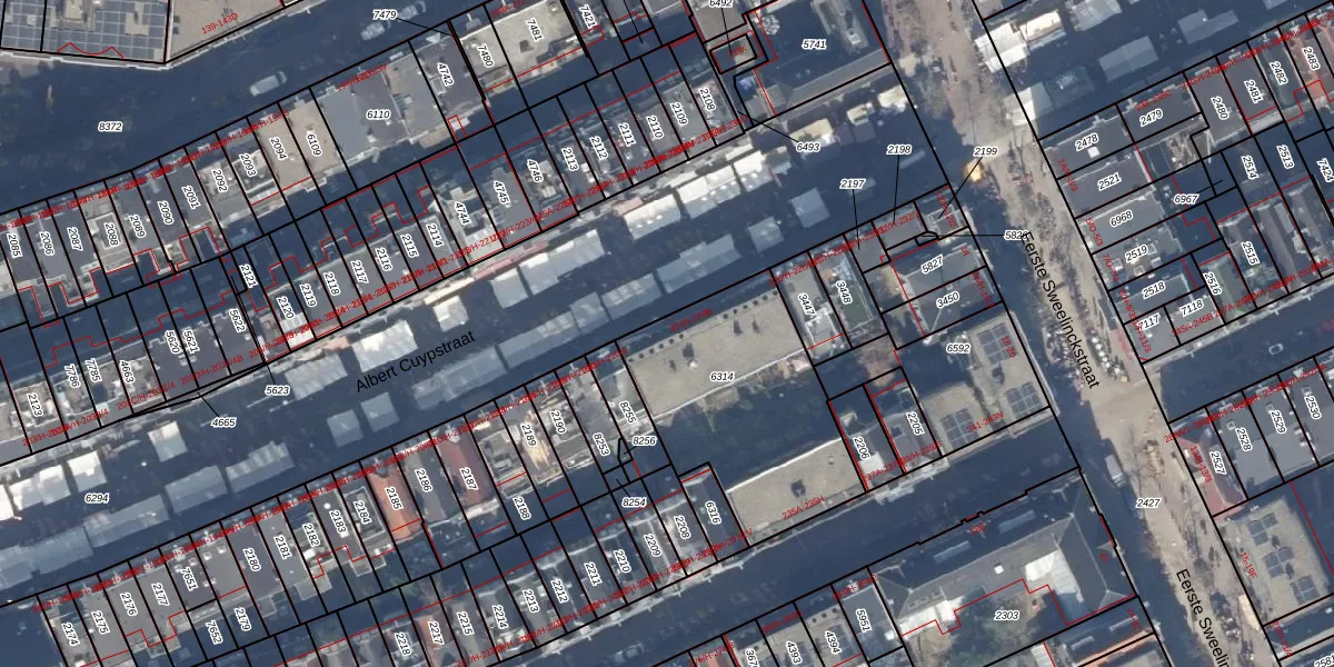 Het perceel waarop Albert Cuypstraat 222-E staat heeft een oppervlakte van 890 m². Dit is een groot perceel. De perceeloppervlakte wordt geregistreerd door het Kadaster. Gedetailleerde informatie over de maten van dit perceel kunt u vinden in het rapport Kadastrale kaart met maatvoering van Albert Cuypstraat 222-E.
