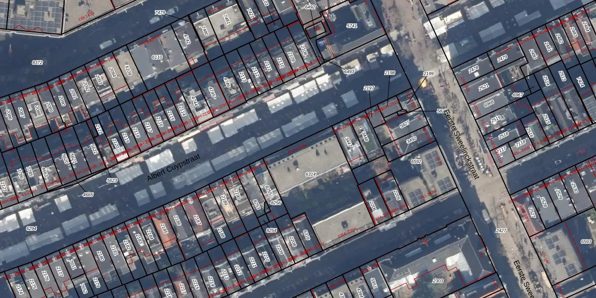 Het perceel waarop Albert Cuypstraat 222-H staat heeft een oppervlakte van 890 m². Dit is een groot perceel. De perceeloppervlakte wordt geregistreerd door het Kadaster. Gedetailleerde informatie over de maten van dit perceel kunt u vinden in het rapport Kadastrale kaart met maatvoering van Albert Cuypstraat 222-H.