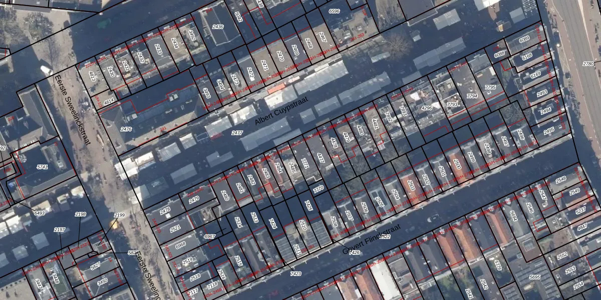 Het perceel waarop Albert Cuypstraat 252-3 staat heeft een oppervlakte van 95 m². Dit is een klein perceel. De perceeloppervlakte wordt geregistreerd door het Kadaster. Gedetailleerde informatie over de maten van dit perceel kunt u vinden in het rapport Kadastrale kaart met maatvoering van Albert Cuypstraat 252-3.