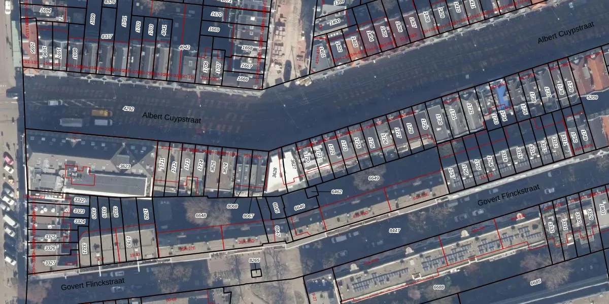 Het perceel waarop Albert Cuypstraat 36-4 staat heeft een oppervlakte van 68 m². Dit is een klein perceel. De perceeloppervlakte wordt geregistreerd door het Kadaster. Gedetailleerde informatie over de maten van dit perceel kunt u vinden in het rapport Kadastrale kaart met maatvoering van Albert Cuypstraat 36-4.