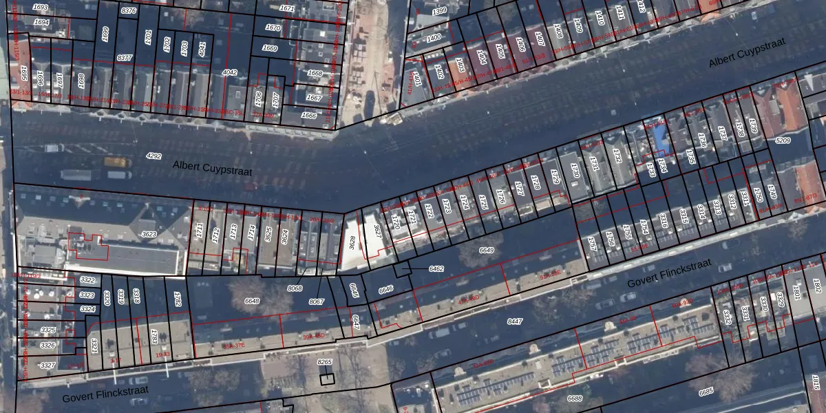 Het perceel waarop Albert Cuypstraat 38-4 staat heeft een oppervlakte van 67 m². Dit is een klein perceel. De perceeloppervlakte wordt geregistreerd door het Kadaster. Gedetailleerde informatie over de maten van dit perceel kunt u vinden in het rapport Kadastrale kaart met maatvoering van Albert Cuypstraat 38-4.