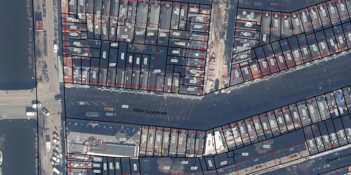 Het perceel waarop Albert Cuypstraat 39-G staat heeft een oppervlakte van 54 m². Dit is een klein perceel. De perceeloppervlakte wordt geregistreerd door het Kadaster. Gedetailleerde informatie over de maten van dit perceel kunt u vinden in het rapport Kadastrale kaart met maatvoering van Albert Cuypstraat 39-G.