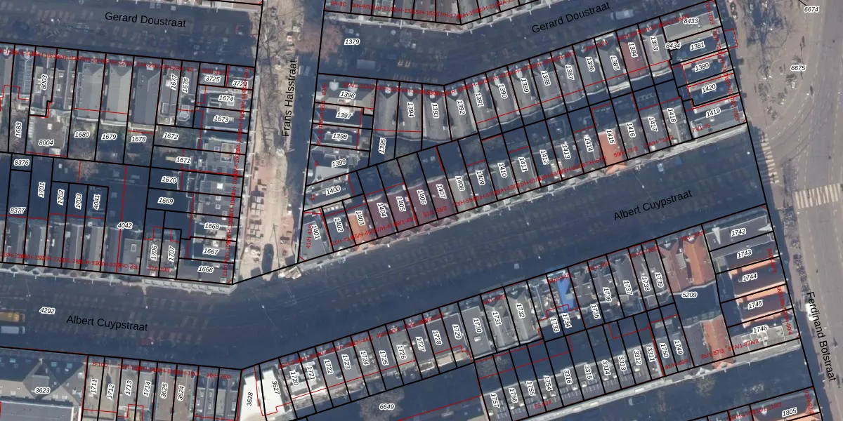 Het perceel waarop Albert Cuypstraat 53-H staat heeft een oppervlakte van 84 m². Dit is een klein perceel. De perceeloppervlakte wordt geregistreerd door het Kadaster. Gedetailleerde informatie over de maten van dit perceel kunt u vinden in het rapport Kadastrale kaart met maatvoering van Albert Cuypstraat 53-H.