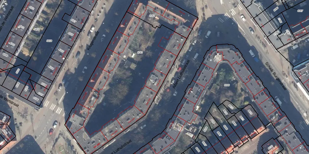 Albert Luthulistraat 14-D is gelegen op kadastraal perceel ASD19W8763. Deze kadastrale aanduiding is uniek en wordt gebruikt door het Kadaster om eigendomsrechten en andere zakelijke rechten vast te leggen. Het perceel maakt onderdeel uit van de kadastrale gemeente Amsterdam.