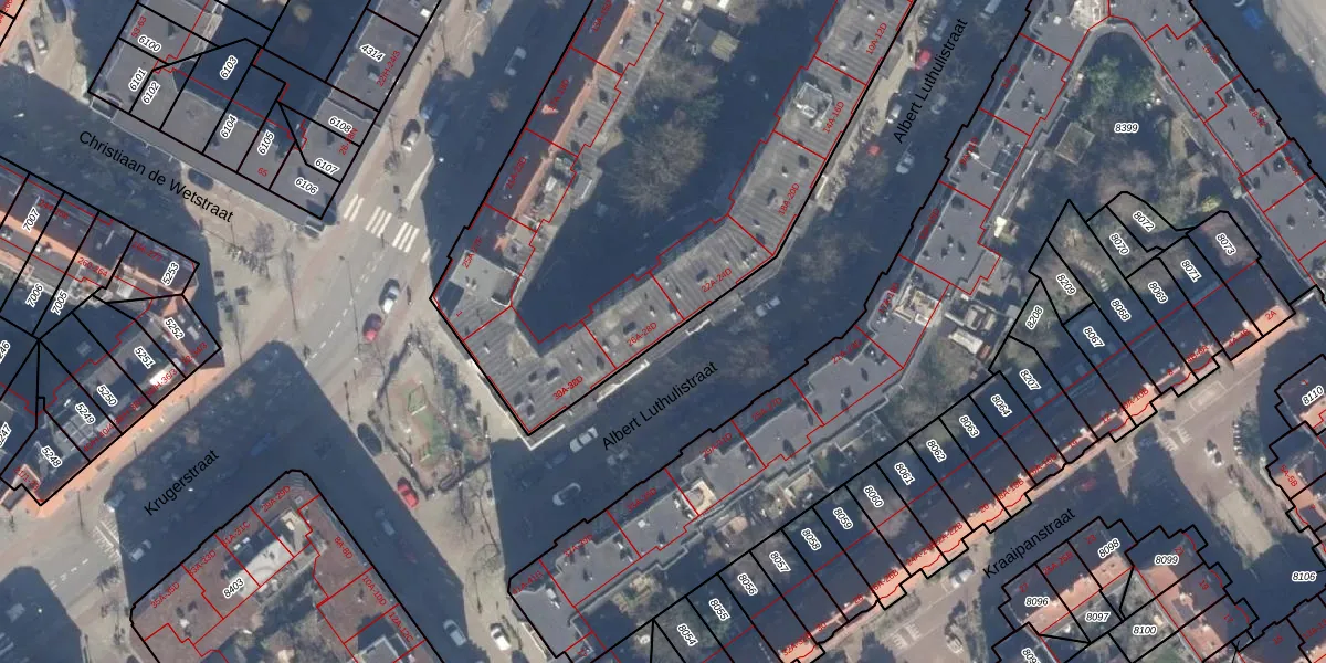 Het adres is gelegen op perceel 8763 in de sectie W en de kadastrale gemeente Amsterdam. De kadastrale aanduiding is aldus ASD19-W-8763. De oppervlakte van het perceel is 3607 m². Dat is groter dan gemiddeld in Amsterdam, waar de gemiddelde perceeloppervlakte op 1563,05 m² ligt. De grootste perceeloppervlakte in de kadastrale gemeente is 17,9 ha. De kleinste oppervlakte bedraagt 0 m². Op het perceel zijn 109 adressen aanwezig. De huidige grenzen van het perceel zijn digitaal in de Basisregistratie Kadaster (BRK) geregistreerd op 18-04-2012.
