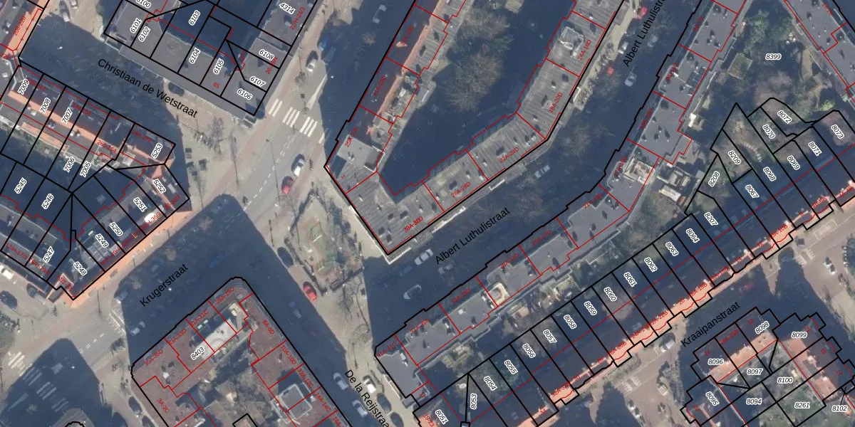 Het adres is gelegen op perceel 8763 in de sectie W en de kadastrale gemeente Amsterdam. De kadastrale aanduiding is aldus ASD19-W-8763. De oppervlakte van het perceel is 3607 m². Dat is groter dan gemiddeld in Amsterdam, waar de gemiddelde perceeloppervlakte op 1563,05 m² ligt. De grootste perceeloppervlakte in de kadastrale gemeente is 17,9 ha. De kleinste oppervlakte bedraagt 0 m². Er zijn 109 adressen aanwezig op het perceel. De laatste wijziging in het de Basisregistratie Kadaster (BRK) was op 18-04-2012.