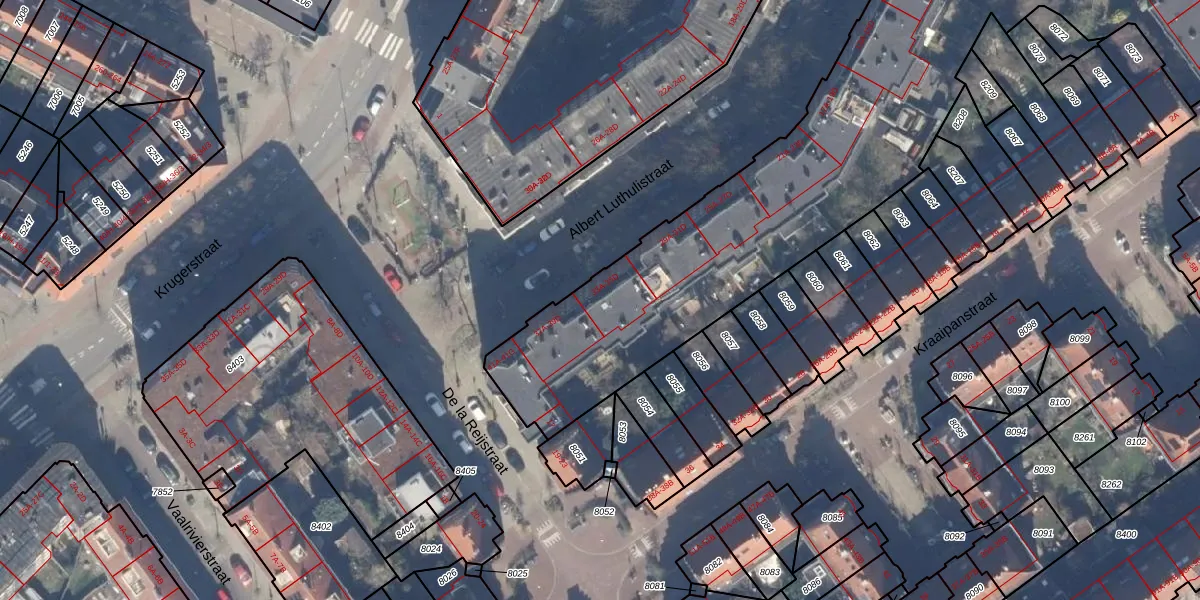 Het adres is gelegen op perceel 8399 in de sectie W en de kadastrale gemeente Amsterdam. De kadastrale aanduiding is aldus ASD19-W-8399. De oppervlakte van het perceel is 4465 m². Dat is groter dan gemiddeld in Amsterdam, waar de gemiddelde perceeloppervlakte op 1563,05 m² ligt. De grootste perceeloppervlakte in de kadastrale gemeente is 17,9 ha. De kleinste oppervlakte bedraagt 0 m². Op het perceel zijn 151 adressen aanwezig. De huidige grenzen van het perceel zijn digitaal in de Basisregistratie Kadaster (BRK) geregistreerd op 03-09-2019.