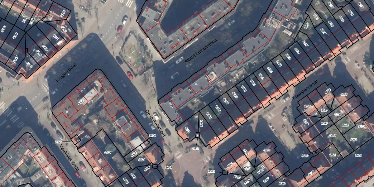 Het adres is gelegen op perceel 8399 in de sectie W en de kadastrale gemeente Amsterdam. De kadastrale aanduiding is aldus ASD19-W-8399. De oppervlakte van het perceel is 4465 m². Dat is groter dan gemiddeld in Amsterdam, waar de gemiddelde perceeloppervlakte op 1563,05 m² ligt. De grootste perceeloppervlakte in de kadastrale gemeente is 17,9 ha. De kleinste oppervlakte bedraagt 0 m². Op het perceel liggen in totaal 151 adressen. De huidige grenzen van het perceel zijn digitaal in de Basisregistratie Kadaster (BRK) geregistreerd op 03-09-2019.