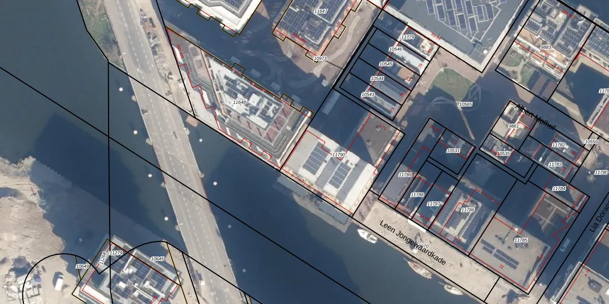 Het perceel waarop het adres ligt is ASD07-K-11790. De afkorting 'ASD07' staat voor kadastrale gemeente Amsterdam. De gemiddelde perceelgrootte in Amsterdam is 2997,17 m². Dit perceel is kleiner: de perceeloppervlakte bedraagt 919 m². Het kleinste perceel in de kadastrale gemeente is 0 m² groot. De grootste perceeloppervlakte is 56,2 ha. Op het perceel zijn 36 adressen aanwezig. In de Basisregistratie Kadaster (BRK) werden de grenzen van het perceel geregistreerd op 12-10-2023.