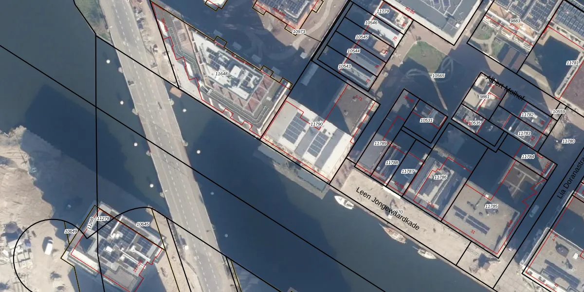 Het perceel waarop het adres ligt is ASD07-K-11790. De afkorting 'ASD07' staat voor kadastrale gemeente Amsterdam. De gemiddelde perceelgrootte in Amsterdam is 2997,17 m². Dit perceel is kleiner: de perceeloppervlakte bedraagt 919 m². Het kleinste perceel in de kadastrale gemeente is 0 m² groot. De grootste perceeloppervlakte is 56,2 ha. Op het perceel zijn 36 adressen aanwezig. In de Basisregistratie Kadaster (BRK) werden de grenzen van het perceel geregistreerd op 12-10-2023.
