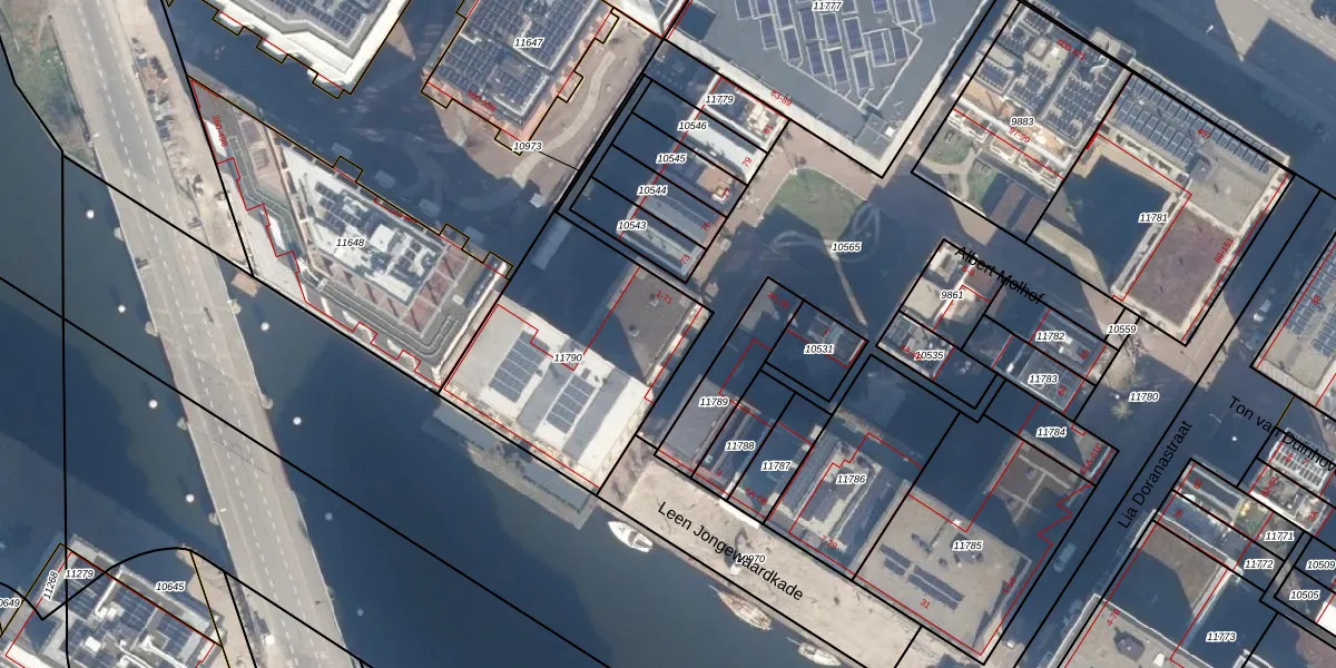 Het perceel waarop het adres ligt is ASD07-K-11790. De afkorting 'ASD07' staat voor kadastrale gemeente Amsterdam. De gemiddelde perceelgrootte in Amsterdam is 3000,38 m². Dit perceel is kleiner: de perceeloppervlakte bedraagt 919 m². Het kleinste perceel in de kadastrale gemeente is 0 m² groot. De grootste perceeloppervlakte is 56,2 ha. Op het perceel zijn 36 adressen aanwezig. De laatste wijziging in het de Basisregistratie Kadaster (BRK) was op 12-10-2023.