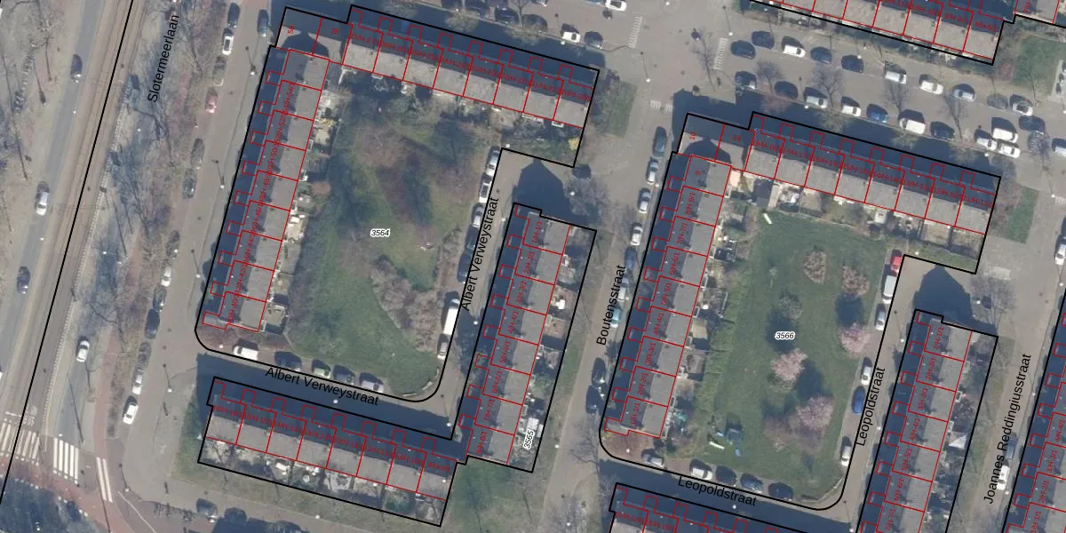 Het perceel waarop Albert Verweystraat 2-1 staat heeft een oppervlakte van 1536 m². Dit is een zeer groot perceel. De perceeloppervlakte wordt geregistreerd door het Kadaster. Gedetailleerde informatie over de maten van dit perceel kunt u vinden in het rapport Kadastrale kaart met maatvoering van Albert Verweystraat 2-1.