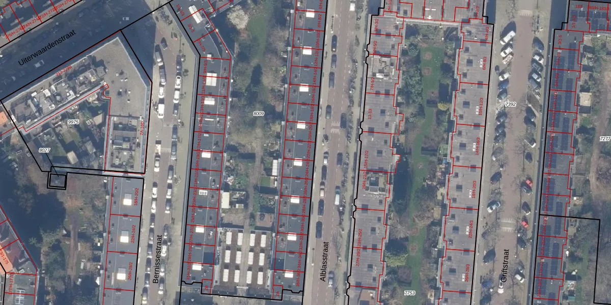 Het perceel waarop Alblasstraat 22-2 staat heeft een oppervlakte van 4581 m². Dit is een zeer groot perceel. De perceeloppervlakte wordt geregistreerd door het Kadaster. Gedetailleerde informatie over de maten van dit perceel kunt u vinden in het rapport Kadastrale kaart met maatvoering van Alblasstraat 22-2.