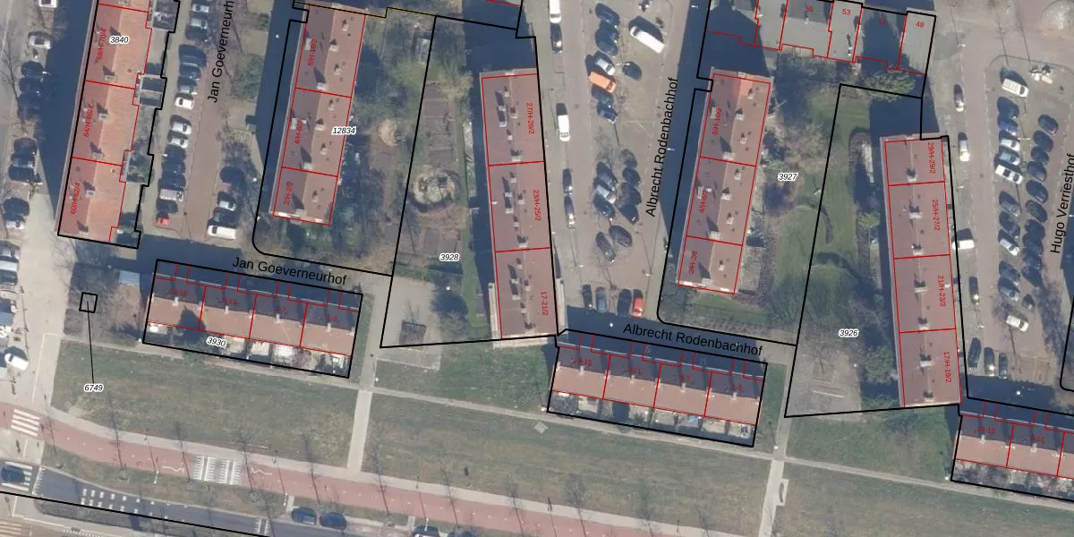 Het perceel waarop Albrecht Rodenbachhof 21-2 staat heeft een oppervlakte van 2135 m². Dit is een zeer groot perceel. De perceeloppervlakte wordt geregistreerd door het Kadaster. Gedetailleerde informatie over de maten van dit perceel kunt u vinden in het rapport Kadastrale kaart met maatvoering van Albrecht Rodenbachhof 21-2.