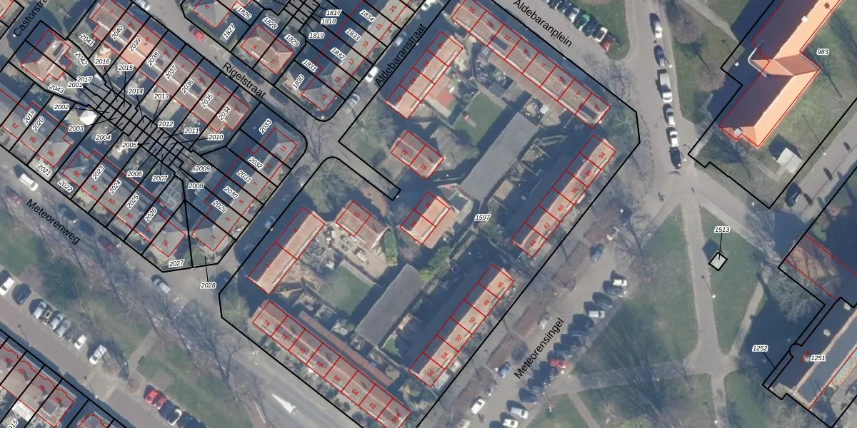 Het perceel waarop Aldebaranstraat 16 staat heeft een oppervlakte van 5323 m². Dit is een zeer groot perceel. De perceeloppervlakte wordt geregistreerd door het Kadaster. Gedetailleerde informatie over de maten van dit perceel kunt u vinden in het rapport Kadastrale kaart met maatvoering van Aldebaranstraat 16.