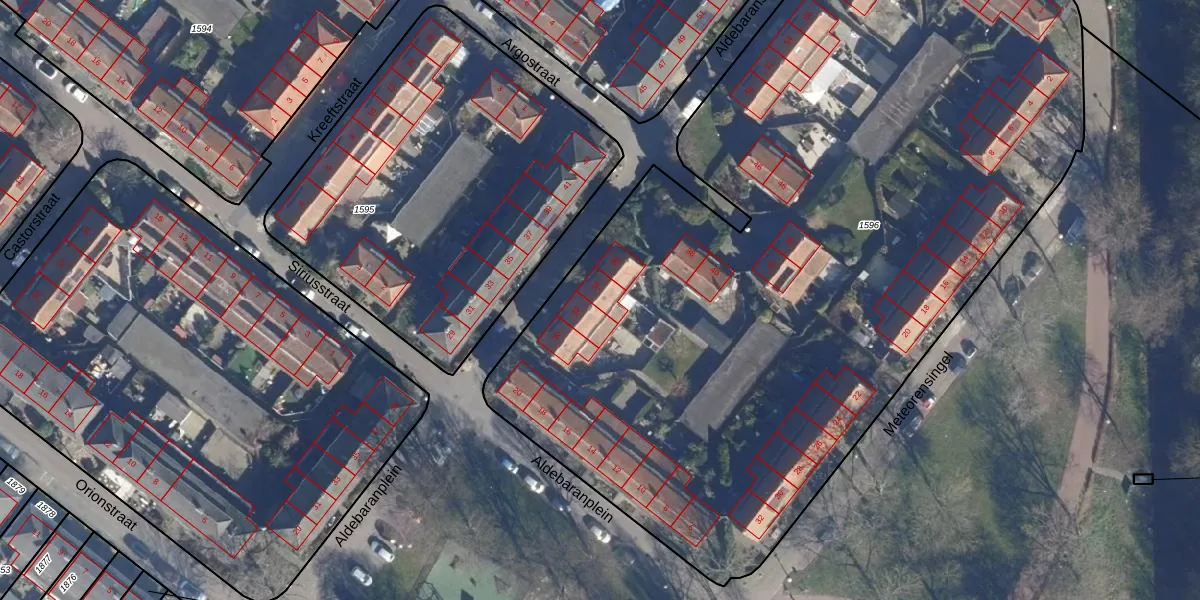 Het perceel waarop Aldebaranstraat 34 staat heeft een oppervlakte van 6051 m². Dit is een zeer groot perceel. De perceeloppervlakte wordt geregistreerd door het Kadaster. Gedetailleerde informatie over de maten van dit perceel kunt u vinden in het rapport Kadastrale kaart met maatvoering van Aldebaranstraat 34.
