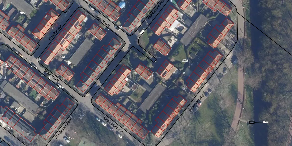 Het perceel waarop Aldebaranstraat 40 staat heeft een oppervlakte van 6051 m². Dit is een zeer groot perceel. De perceeloppervlakte wordt geregistreerd door het Kadaster. Gedetailleerde informatie over de maten van dit perceel kunt u vinden in het rapport Kadastrale kaart met maatvoering van Aldebaranstraat 40.