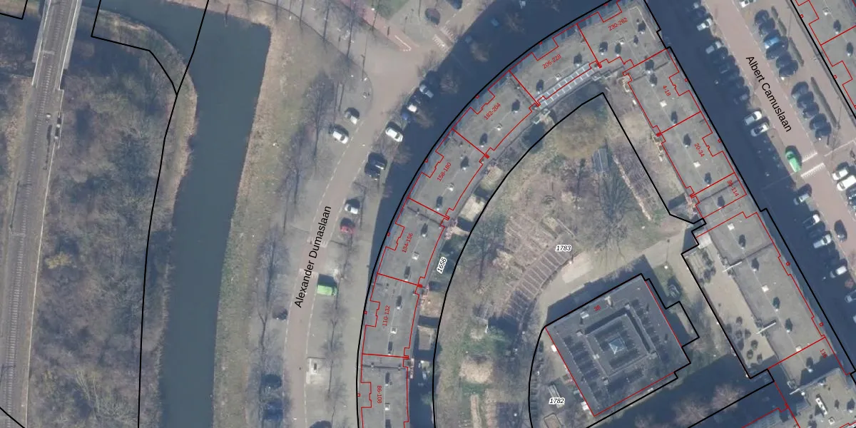 Het perceel waarop Alexander Dumaslaan 134 staat heeft een oppervlakte van 6425 m². Dit is een zeer groot perceel. De perceeloppervlakte wordt geregistreerd door het Kadaster. Gedetailleerde informatie over de maten van dit perceel kunt u vinden in het rapport Kadastrale kaart met maatvoering van Alexander Dumaslaan 134.