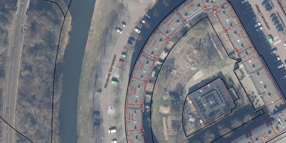 Het perceel waarop Alexander Dumaslaan 152 staat heeft een oppervlakte van 6425 m². Dit is een zeer groot perceel. De perceeloppervlakte wordt geregistreerd door het Kadaster. Gedetailleerde informatie over de maten van dit perceel kunt u vinden in het rapport Kadastrale kaart met maatvoering van Alexander Dumaslaan 152.
