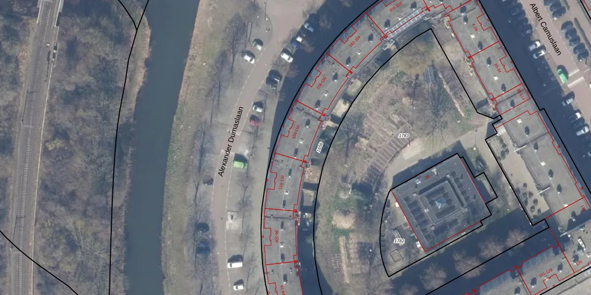 Alexander Dumaslaan 156 is gelegen op kadastraal perceel WPK02A1656. Deze kadastrale aanduiding is uniek en wordt gebruikt door het Kadaster om eigendomsrechten en andere zakelijke rechten vast te leggen. Het perceel maakt onderdeel uit van de kadastrale gemeente Weesperkarspel.