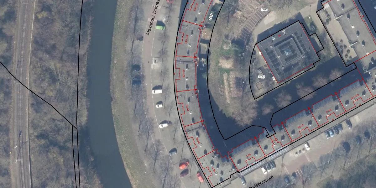 Het perceel waarop Alexander Dumaslaan 62 staat heeft een oppervlakte van 6425 m². Dit is een zeer groot perceel. De perceeloppervlakte wordt geregistreerd door het Kadaster. Gedetailleerde informatie over de maten van dit perceel kunt u vinden in het rapport Kadastrale kaart met maatvoering van Alexander Dumaslaan 62.