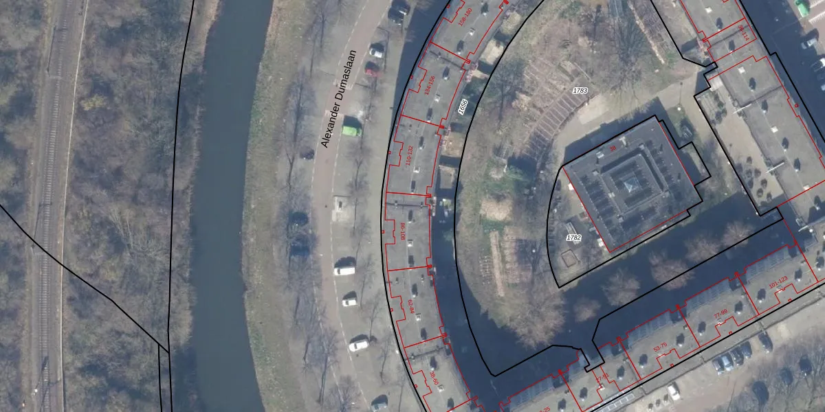 Het perceel waarop Alexander Dumaslaan 90 staat heeft een oppervlakte van 6425 m². Dit is een zeer groot perceel. De perceeloppervlakte wordt geregistreerd door het Kadaster. Gedetailleerde informatie over de maten van dit perceel kunt u vinden in het rapport Kadastrale kaart met maatvoering van Alexander Dumaslaan 90.