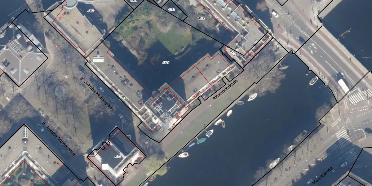 Het adres ligt op het perceel ASD11-O-4314, dat zich in de kadastrale gemeente Amsterdam bevindt. Het perceel is met 3364 m² relatief groot. Het gemiddelde ligt in de kadastrale gemeente Amsterdam op 781,11 m². Het grootste perceel in de kadastrale gemeente is 12,0 ha. Het kleinste perceel heeft een oppervlakte van 1 m². Er zijn 48 adressen aanwezig op het perceel. In de Basisregistratie Kadaster (BRK) werden de grenzen van het perceel geregistreerd op 18-02-1999.