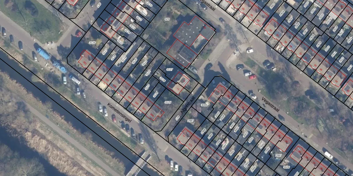 Het perceel waarop Algolstraat 1 staat heeft een oppervlakte van 134 m². Dit is een middelgroot perceel. De perceeloppervlakte wordt geregistreerd door het Kadaster. Gedetailleerde informatie over de maten van dit perceel kunt u vinden in het rapport Kadastrale kaart met maatvoering van Algolstraat 1.
