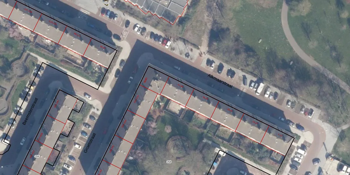Het perceel waarop Alkmaarstraat 65 staat heeft een oppervlakte van 5240 m². Dit is een zeer groot perceel. De perceeloppervlakte wordt geregistreerd door het Kadaster. Gedetailleerde informatie over de maten van dit perceel kunt u vinden in het rapport Kadastrale kaart met maatvoering van Alkmaarstraat 65.