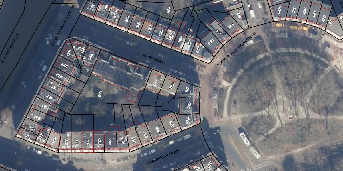 Amaliastraat 1-3 is gelegen op kadastraal perceel ASD13Q7116. Deze kadastrale aanduiding is uniek en wordt gebruikt door het Kadaster om eigendomsrechten en andere zakelijke rechten vast te leggen. Het perceel maakt onderdeel uit van de kadastrale gemeente Amsterdam.