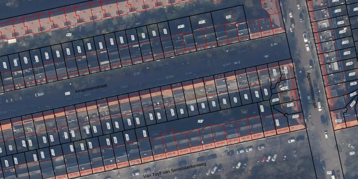 Amazonenstraat 21-1 is gelegen op kadastraal perceel ASD23AB511. Deze kadastrale aanduiding is uniek en wordt gebruikt door het Kadaster om eigendomsrechten en andere zakelijke rechten vast te leggen. Het perceel maakt onderdeel uit van de kadastrale gemeente Amsterdam.