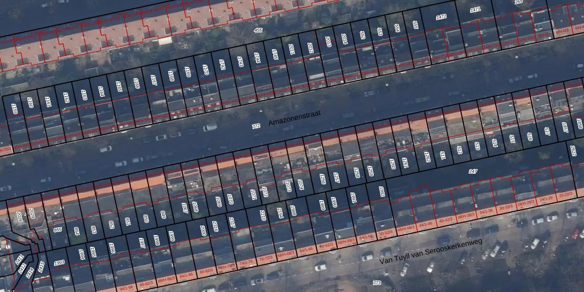 Het perceel waarop Amazonenstraat 37-2 staat heeft een oppervlakte van 122 m². Dit is een middelgroot perceel. De perceeloppervlakte wordt geregistreerd door het Kadaster. Gedetailleerde informatie over de maten van dit perceel kunt u vinden in het rapport Kadastrale kaart met maatvoering van Amazonenstraat 37-2.