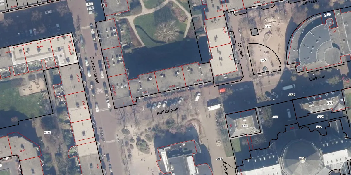 Ambonplein 23 is gelegen op kadastraal perceel ASD19W7624. Deze kadastrale aanduiding is uniek en wordt gebruikt door het Kadaster om eigendomsrechten en andere zakelijke rechten vast te leggen. Het perceel maakt onderdeel uit van de kadastrale gemeente Amsterdam.