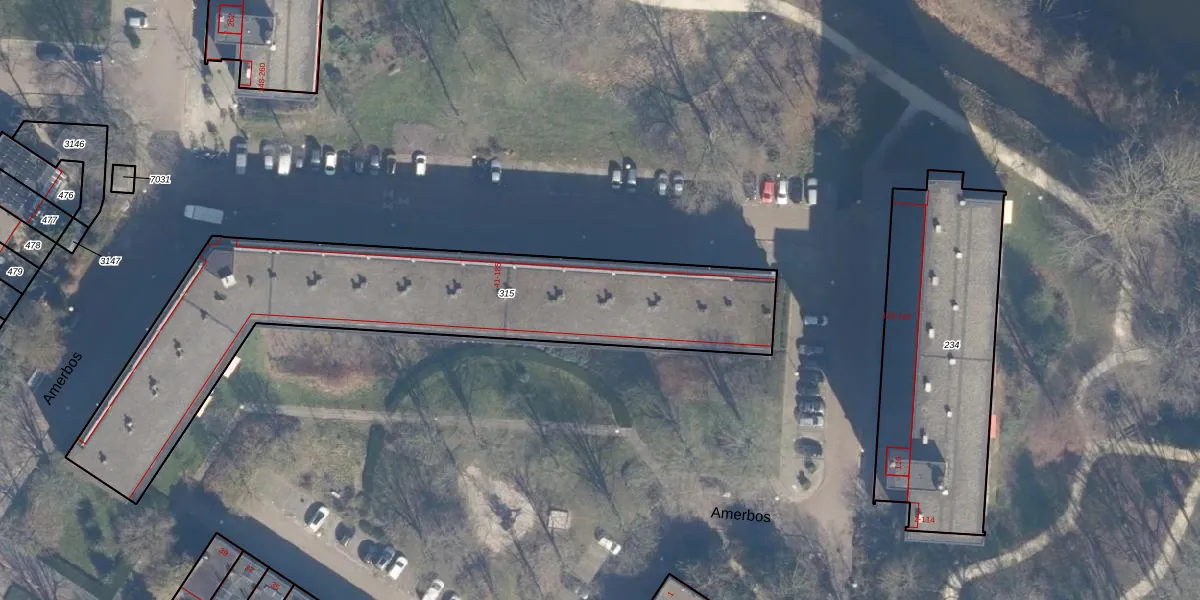 Het perceel waarop Amerbos 115 staat heeft een oppervlakte van 1850 m². Dit is een zeer groot perceel. De perceeloppervlakte wordt geregistreerd door het Kadaster. Gedetailleerde informatie over de maten van dit perceel kunt u vinden in het rapport Kadastrale kaart met maatvoering van Amerbos 115.