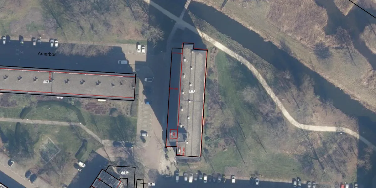 Het perceel waarop Amerbos 174 staat heeft een oppervlakte van 1049 m². Dit is een zeer groot perceel. De perceeloppervlakte wordt geregistreerd door het Kadaster. Gedetailleerde informatie over de maten van dit perceel kunt u vinden in het rapport Kadastrale kaart met maatvoering van Amerbos 174.