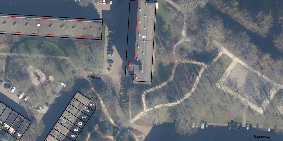 Het perceel waarop Amerbos 18 staat heeft een oppervlakte van 1049 m². Dit is een zeer groot perceel. De perceeloppervlakte wordt geregistreerd door het Kadaster. Gedetailleerde informatie over de maten van dit perceel kunt u vinden in het rapport Kadastrale kaart met maatvoering van Amerbos 18.
