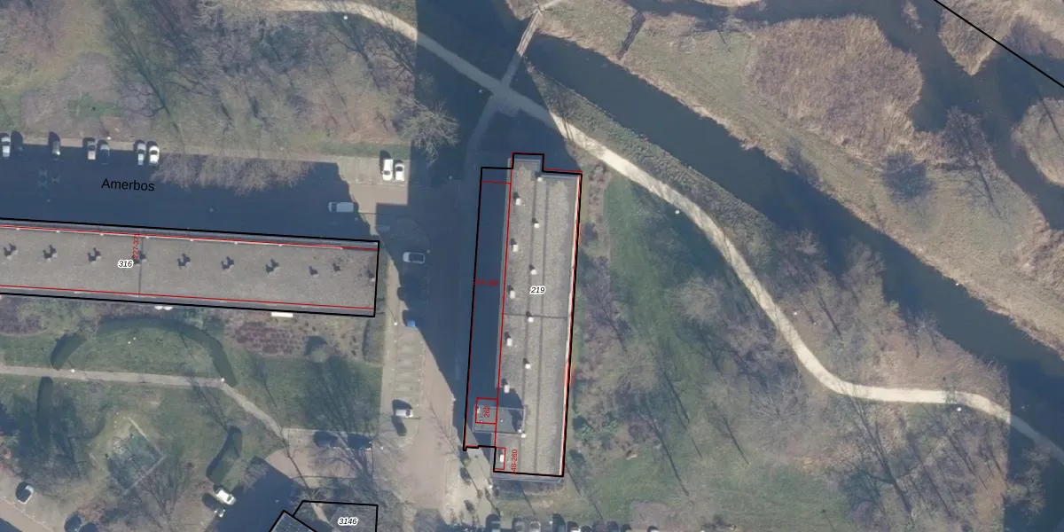 Het perceel waarop Amerbos 216 staat heeft een oppervlakte van 1049 m². Dit is een zeer groot perceel. De perceeloppervlakte wordt geregistreerd door het Kadaster. Gedetailleerde informatie over de maten van dit perceel kunt u vinden in het rapport Kadastrale kaart met maatvoering van Amerbos 216.